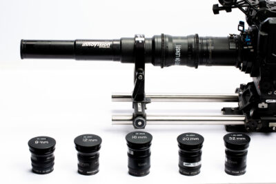 Probe II lenses come with a set of five interchangeable front objectives. The Probe II for 35mm film work, rated at T5.6, provides focal lengths ranging from 9-40mm. The 16mm/video unit offers a range of focal lengths from 5-24mm with a speed of T2.8.