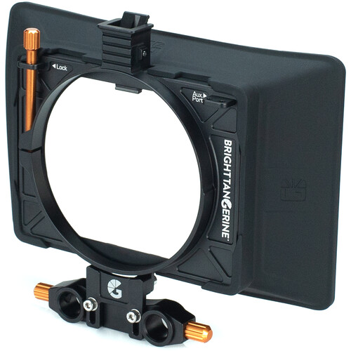 The Misfit Atom Matte Box and 15mm LWS Rod Clamp from Bright Tangerine is a small, lightweight, yet strong clamp-on matte box for lenses with an outer diameter of up to 114mm. This kit includes the Atom Misfit matte box, a flexible lens hood, an A.R.F. bracket, and a 15mm LWS rod clamp. It holds up to two 4×4 or 4×5.65″ filters without using filter trays. The included A.R.F (Anti-Reflection) bracket tilts your filters to help minimize reflections. The matte box provides a wide field of view suitable for many wide angle lenses even with two filters mounted.