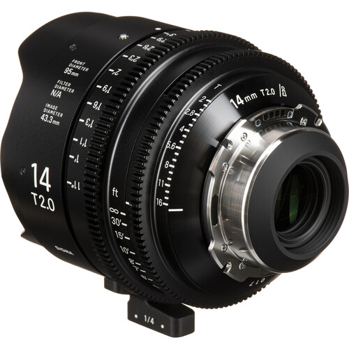 The enhanced 14mm T2 FF High-Speed Cine Prime from Sigma combines the same high-quality optics and mechanics of its FF prime line with a cine-oriented design including Cooke/i Technology that provides lens metadata to assist in post and visual effects production. This 14mm prime with PL mount is a wider focal length in the series offering full-frame sensor coverage, 6 to 8K resolution, lens markings in feet, and a T2 maximum aperture in a compact, lightweight form.